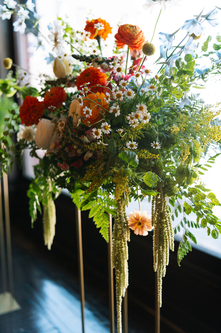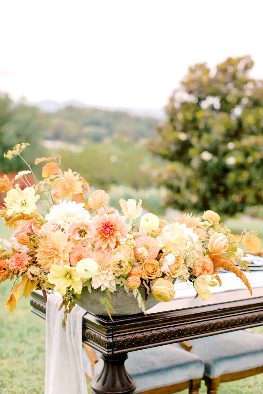 A breathtaking focal point, grown from the soil up. Our Grand Statement Piece is a large-scale, artfully composed arrangement designed to anchor your celebration with presence and beauty. Harvested at peak bloom from our fields, each stem carries the vitality of the season: layered textures, nuanced color shifts, and the natural movement that only truly fresh, farm-grown flowers can offer.
